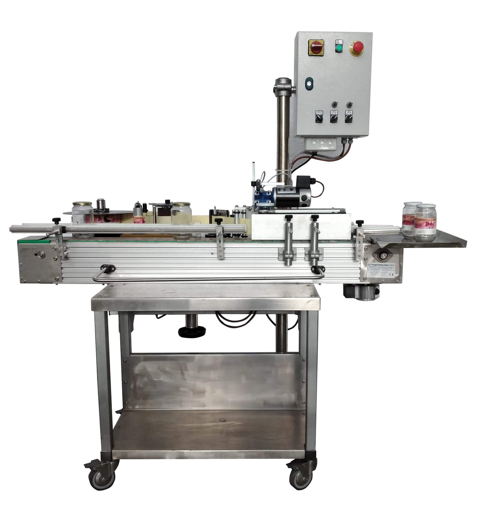 The LA.1230 embodies this philosophy: a precise and dependable linear self-adhesive labeling machine capable of applying labels with millimeter-level tolerance at speeds up to $30 \text{ m/min}$. Robust and easily adjustable, it integrates seamlessly into production lines for bottles, jars, and packages of any format, ensuring operational continuity and aesthetic uniformity.