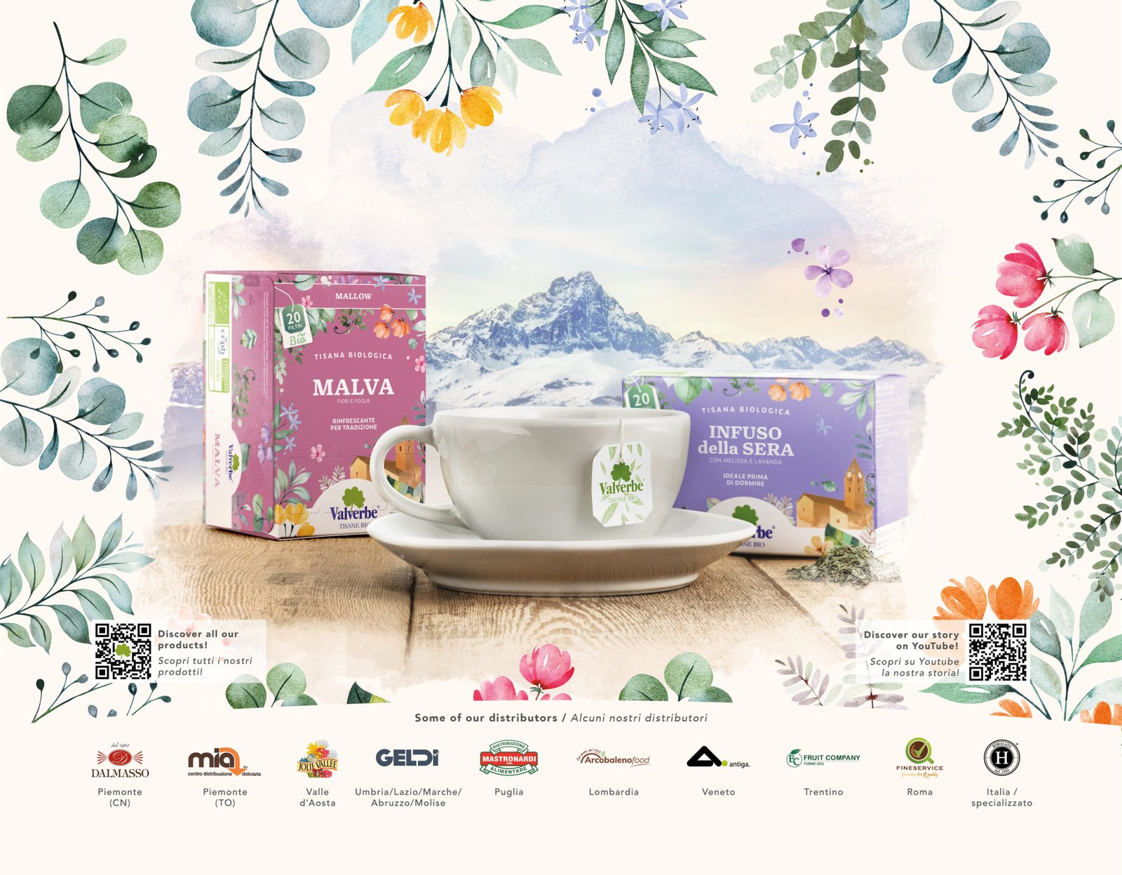 Conosciuta per le sue Tisane di Montagna, Valverbe gestisce l’intera filiera produttiva, dalla semina al confezionamento, garantendo qualità e tracciabilità uniche nel settore. Le erbe biologiche, fresche e prive di OGM, vengono essiccate con un innovativo sistema a cellula aperta che preserva intatte le proprietà, l’aroma e il profumo.